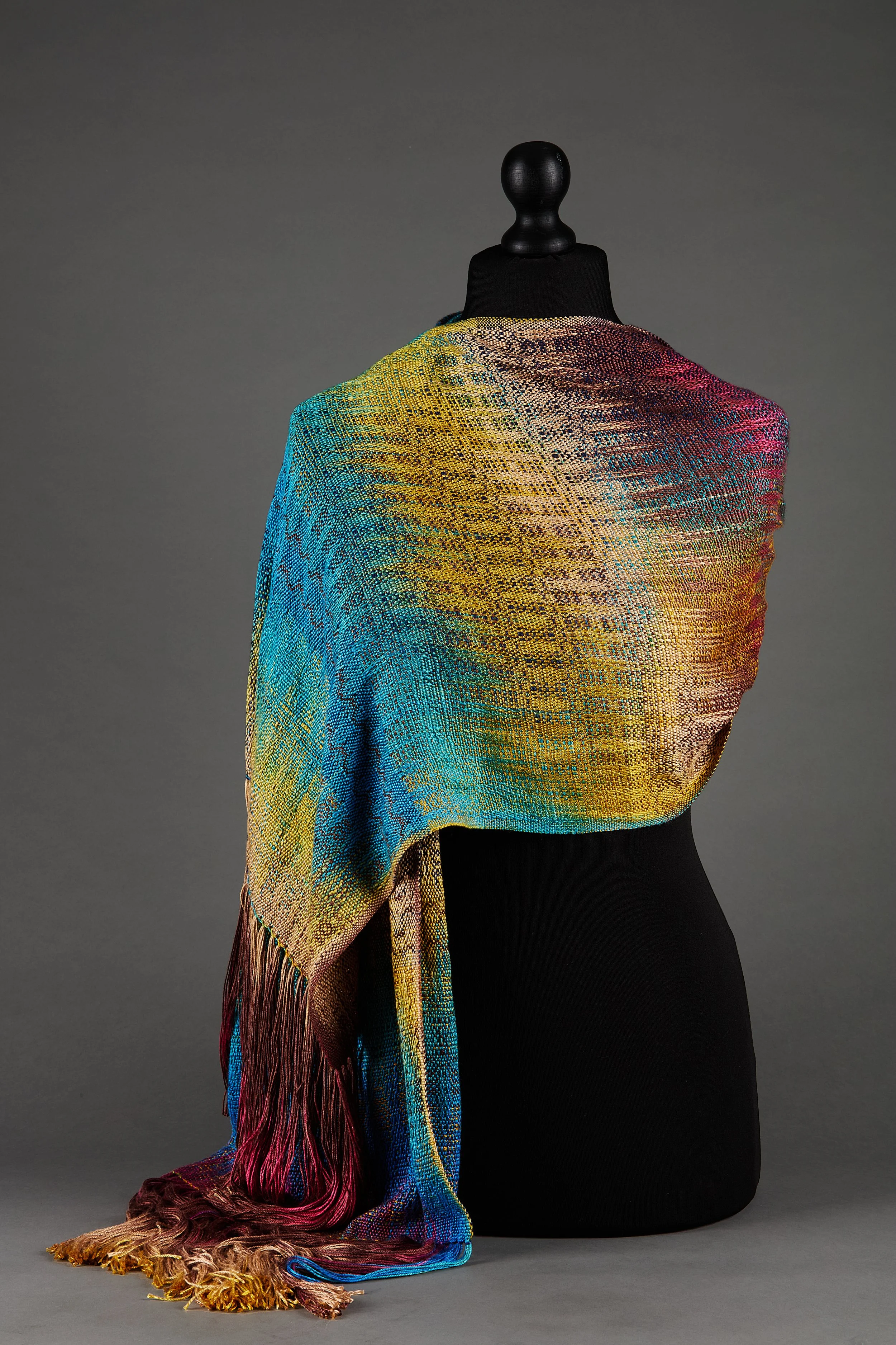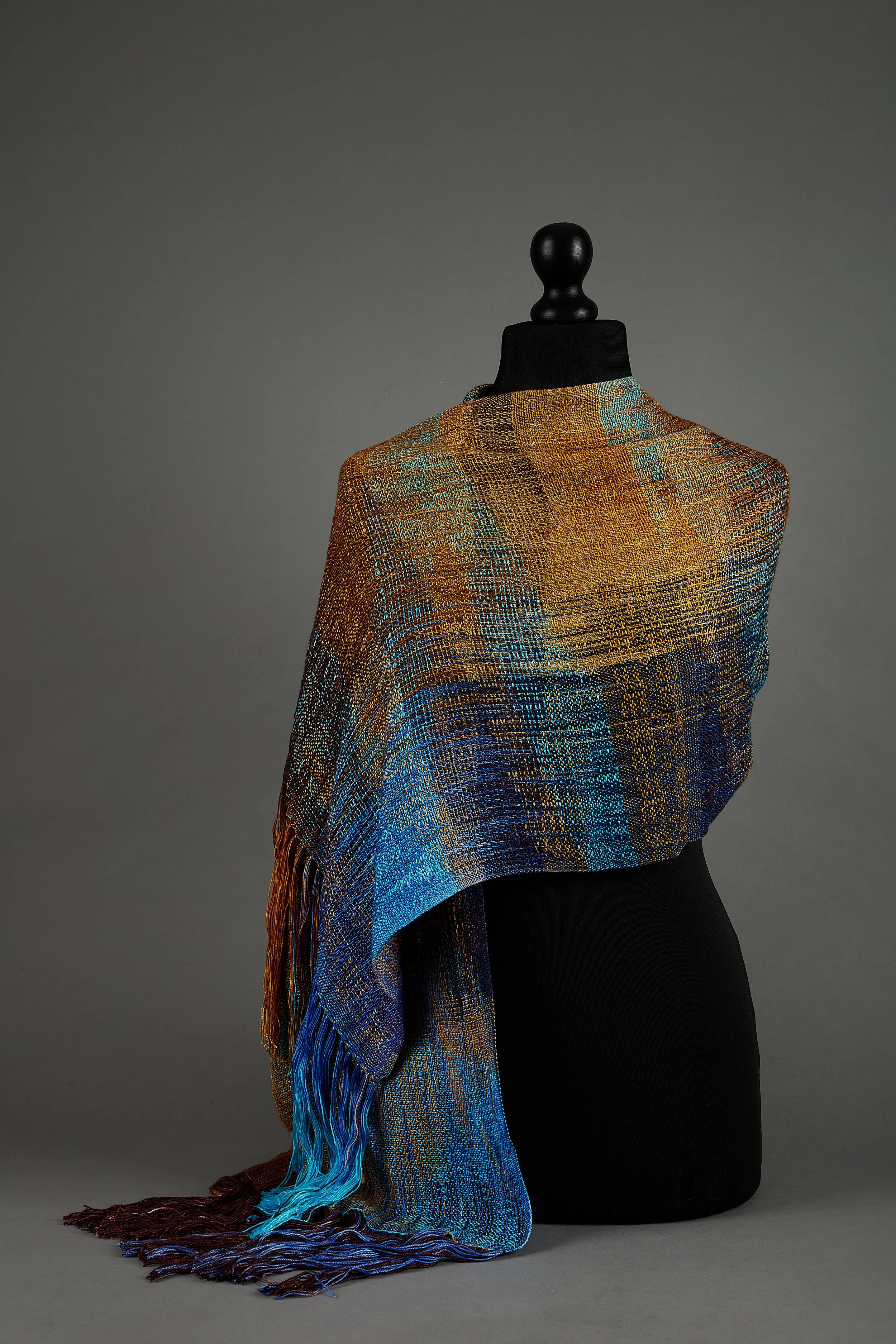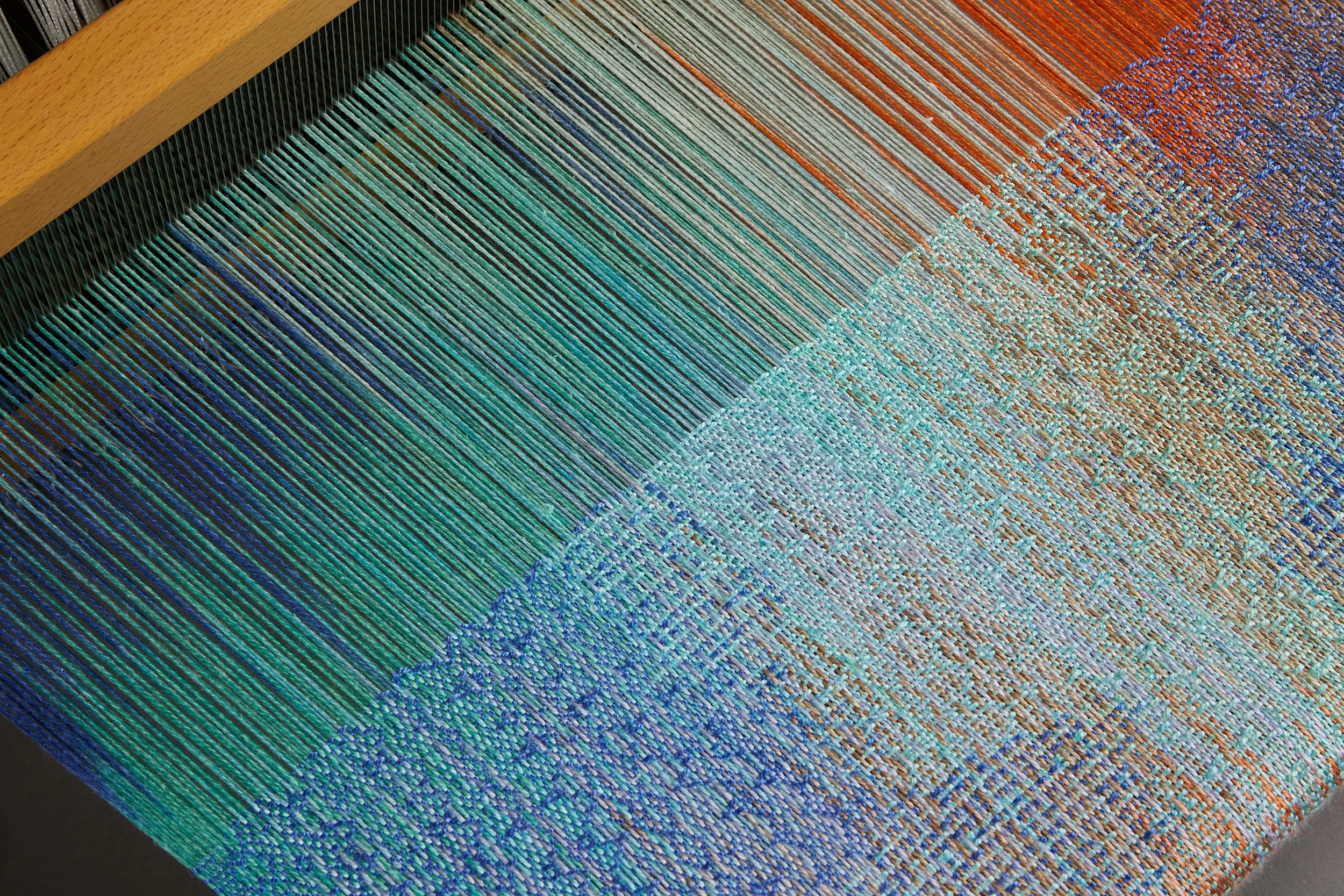 Every piece is created on a hand loom using hand-dyed yarns, woven slowly to capture a sense of place and time.
