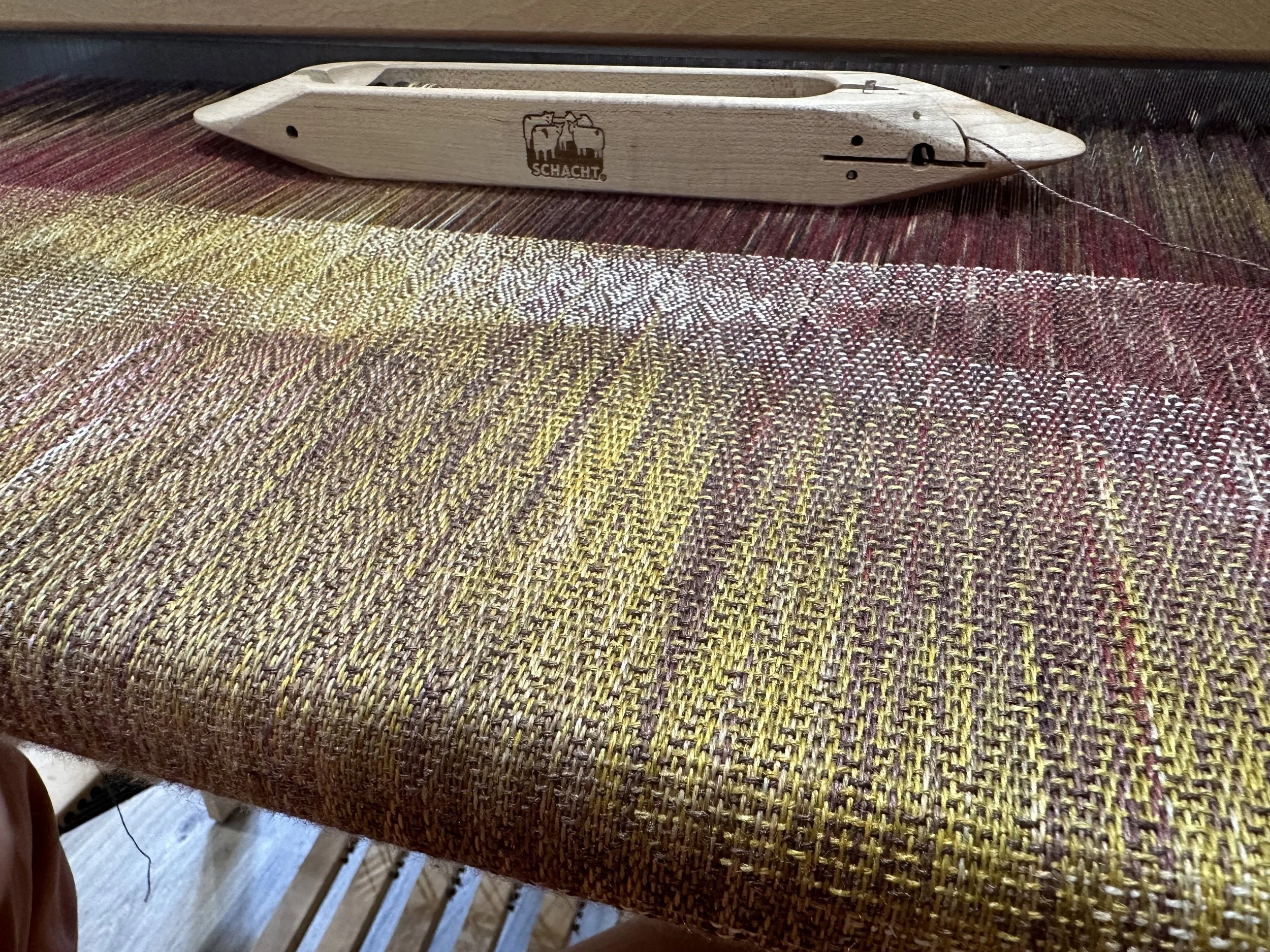 I wove it in lace-weight yarn and tussah silk to capture that sense of air and movement, the soft shimmer of feathers in flight. The cloth holds the quiet energy of that encounter. Light, layered, and alive with the colours of the moor.